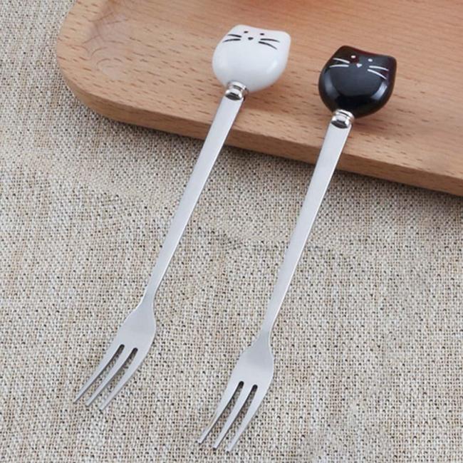 Kitty Stainless Steel Dessert Fork - Always Whiskered