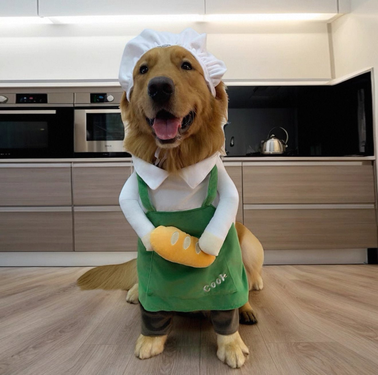 Dress your pet as the sweetest little baker! Complete with a chef hat, apron, and plush bread accessory, itβs the paw-fect outfit for parties, photos, and special occasions.