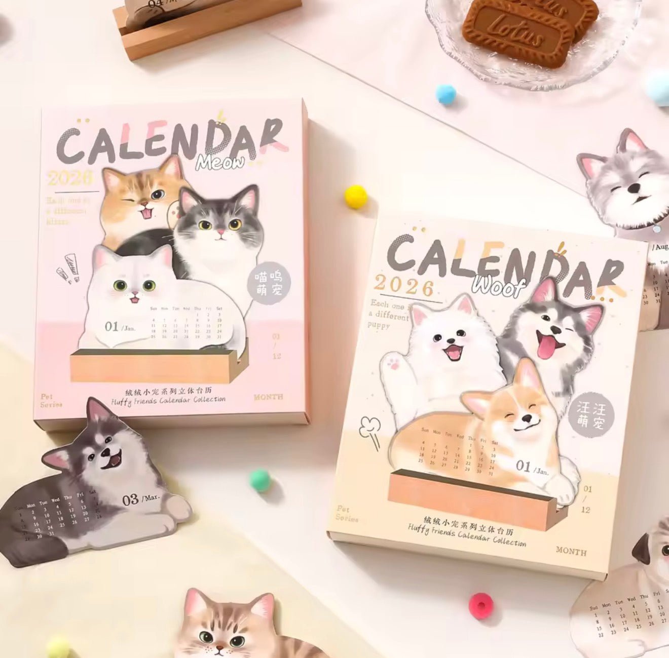 Brighten your year with these adorable animal-shaped calendars! Perfect for pet lovers, each month features a new "fluffy friend" to keep you company and organized.